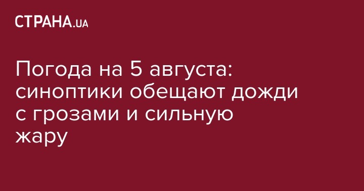 "5 августа на Западе и Севере пройдут кратковременные грозовые дожди, будет парить сильно. На остальной территории будет сухо", - пишет Диденко.