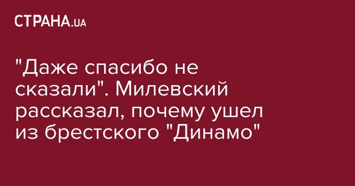 Украинский форвард Артем Милевский впервые прокомментировал уход из брестского "Динамо".