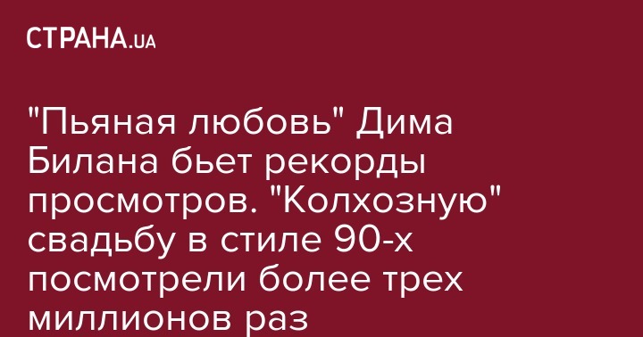 Российский певец Дима Билан в дуэте с певицей Polina презентовал клип на песню "Пьяная любовь", который уже сравнивают с видеоработами группы "Ленинград" и называют сатирическим. За несколько дней, с 3 августа, видео на youtube просмотрели три с половиной миллиона раз.