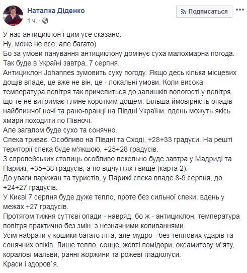 Также читайте о том, что синоптики прогнозируют в Украине тропический август с дождями и жарой.