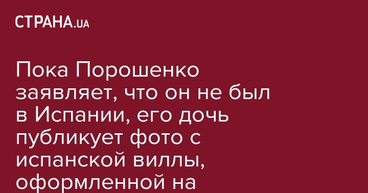 После того, как в Администрации президента подтвердили, что Петр Порошенко, который не появлялся на рабочем месте после Крестного хода, был в частной поездке в Европе, выяснилось, что он с семьей находился в Испании. Хотя в АП заявляли, что сообщения о пребывании президента в Испании не соответствуют действительности. А сам Петр Порошенко лично позвонил корреспонденту ТСН и заявил, что ни он, ни его дети не были в Испании.