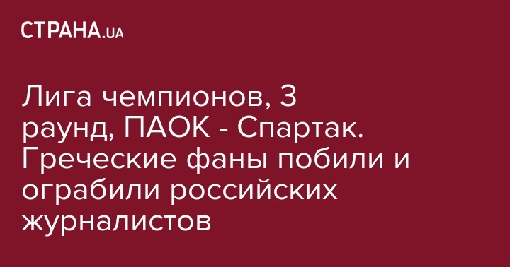 Лига чемпионов, 3 раунд, ПАОК - Спартак. Греческие фаны побили и ограбили российских журналистов