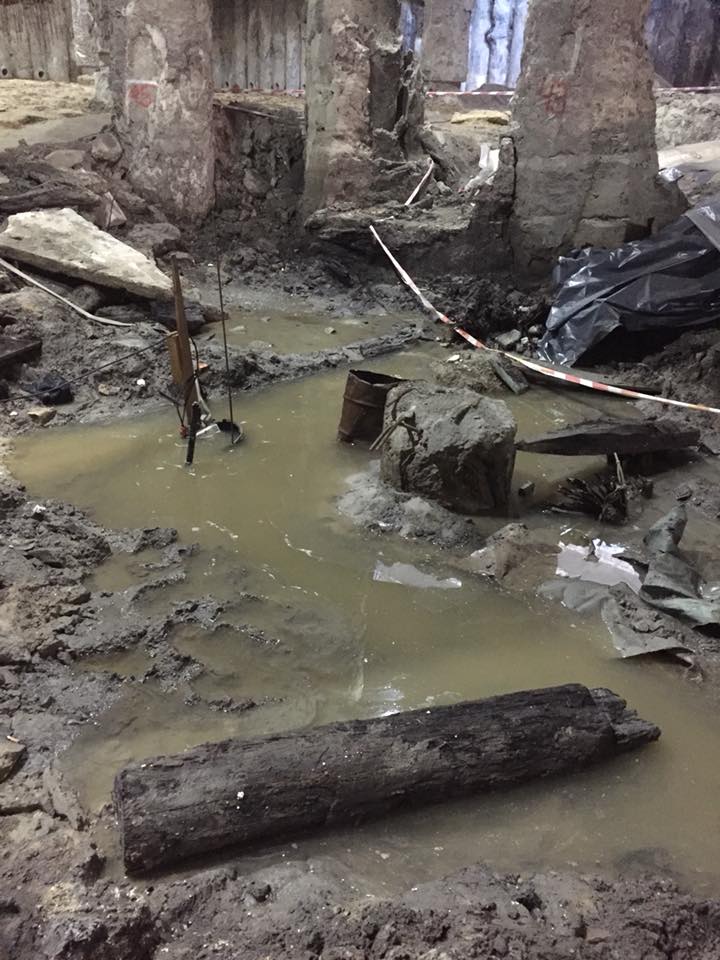 Раскопки древнего Киева на Почтовой площади начала стремительно заливать вода. Фото