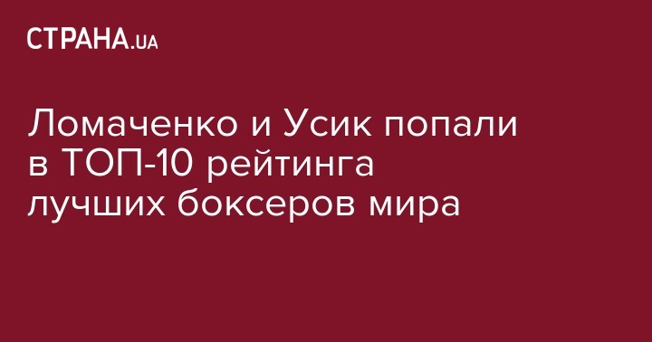 Чемпион мира по версии WBA в легком весе Василий Ломаченко продолжает удерживать звание лучшего боксера по версии авторитетного спортивного телеканала ESPN. А Александр Усик впервые попал в первую десятку этого рейтинга. Абсолютный чемпион мира в тяжелом весе занимает восьмую позицию.