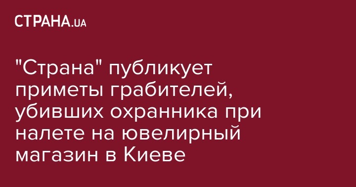 В полиции сумели выяснить приблизительные приметы грабителей, совершивших налет на ювелирный магазин. Ограбление закончилось смертью охранника. Все грабители были спортивного телосложения в возрасте около 30-35 лет. Об этом сообщают источники "Страны" в Нацполиции.