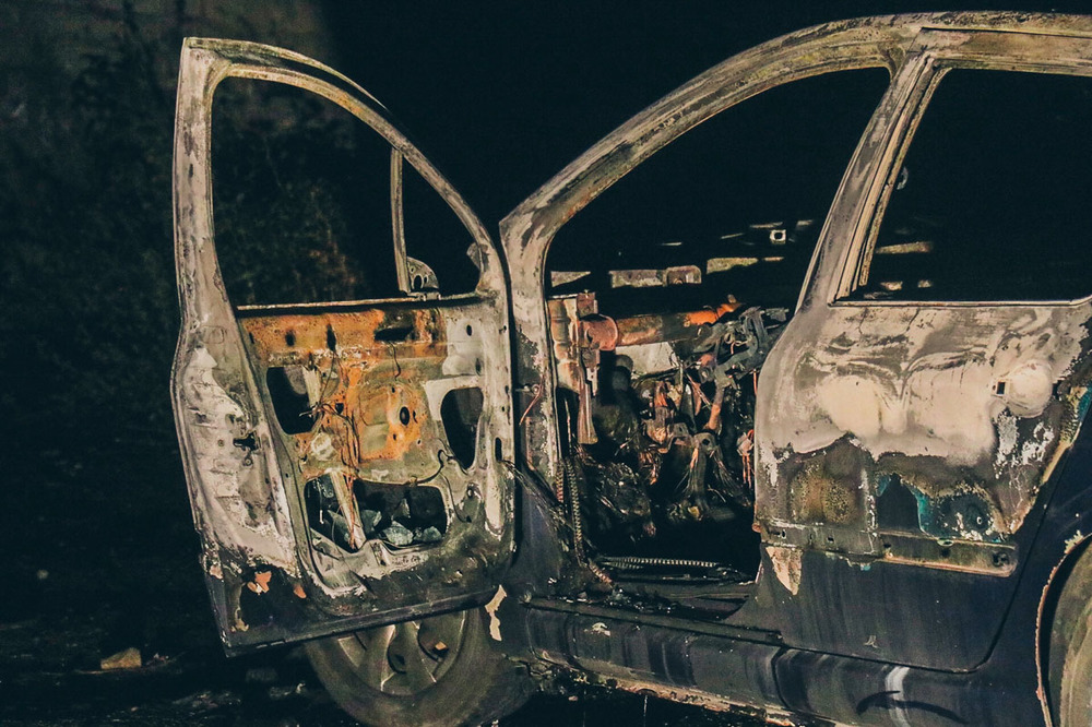 Появились фото сгоревшей машины, на которой скрылись участники кровавого ограбления ювелирки в Киеве