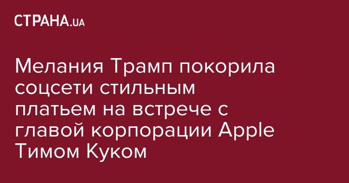 "Президент США и я были рады поужинать вместе с Тимом Куком в прошлый вечер в Бедминстере. Горжусь тем, что Кук делает в Apple - крупные инновации и вложения в США, которые положительным образом скажутся на нашей экономике", - написала в соцсети Мелания Трамп.