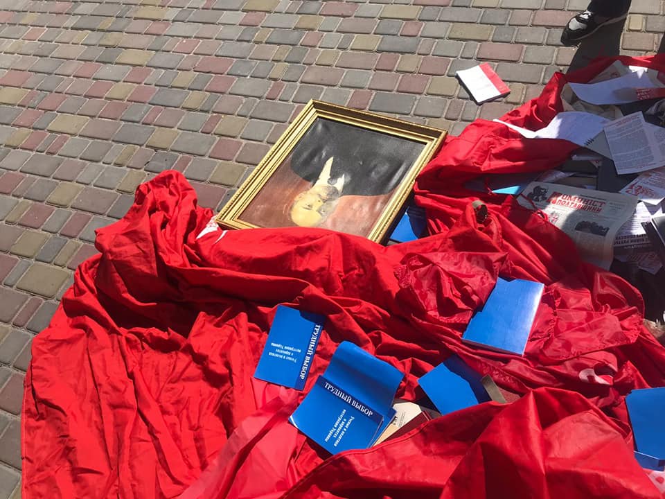 Активист опубликовал фото с запрещенной символикой, изъятой из помещений.