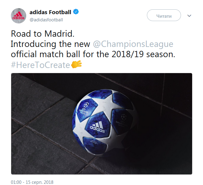 "Дорога в Мадрид, представляем новый официальный мяч сезона 2018/2019", - уточнили в пресс-службе компании.