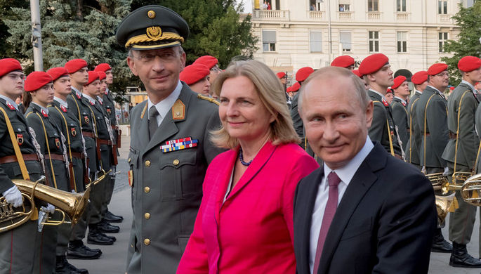 Сегодняшняя свадебная церемония главы внешнеполитического ведомства Австрии Карин Кнайсль с бизнесменом Вольфгангом Майлингером была отложена из-за опоздания на торжество российского президента Владимира Путина. Об этом сообщает телеканал Oe24.