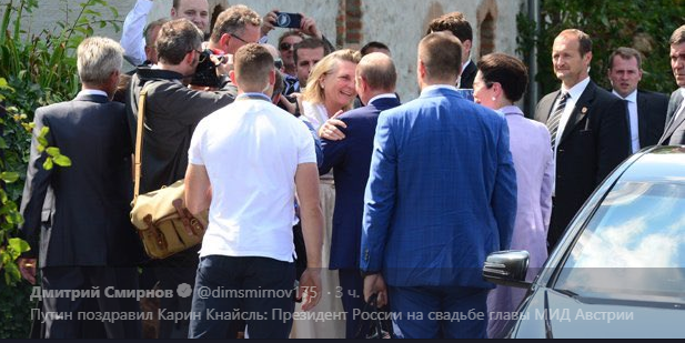 Сегодня, 18 августа, глава МИД Австрии Карин Кнайсль вышла замуж за австрийского бизнесмена Вольфганга Майлингера. Одним из главных гостей церемонии стал президент России Владимир Путин.