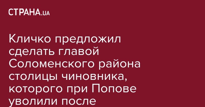 Кличко предложил сделать главой Соломенского района столицы чиновника, которого при Попове уволили после уголовного дела