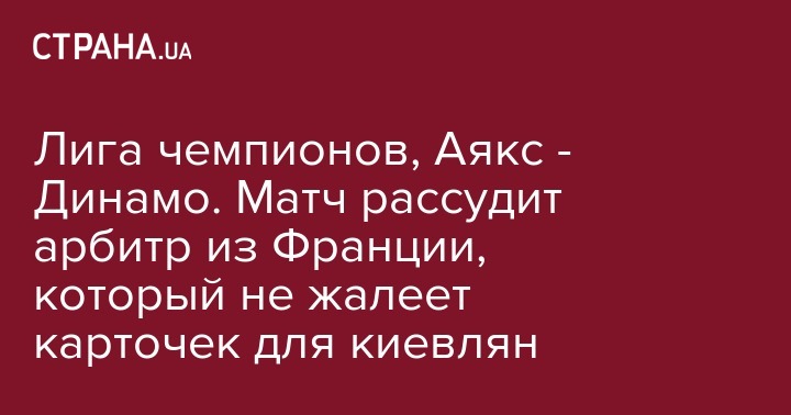 Лига чемпионов, Аякс - Динамо. Матч рассудит арбитр из Франции, который не жалеет карточек для киевлян