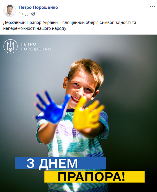 Сегодня, 23 августа, президент Украины Петр Порошенко поздравил украинцев с Днем Государственного Флага. Свое поздравление глава государства разместил на официальных страницах в Facebook и Twitter.