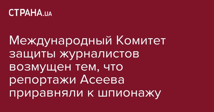 CPJ также повторяет свой призыв немедленно освободить Асеева. "В интервью журналистам "Россия 24" Асеев, выглядящий изможденным и нервным, заявил, что он шпионил в пользу украинских разведывательных служб, что соответствует обвинениям, выдвинутым против него властями непризнанной, самопровозглашенной Донецкой Народной Республики, которую часто называют русской аббревиатурой ДНР", - отмечает "Комитет защиты журналистов".
