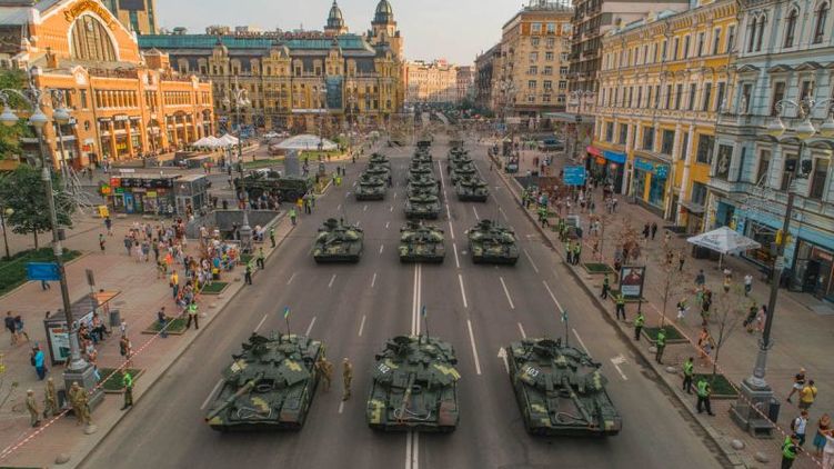 Самые масштабные мероприятия пройдут в столице. Утром здесь возложат цветы к памятникам. Парад начнется в 10:00. По улицам проедут новейшие образцы украинской военной техники. Кроме колонн войск ВСУ, зрители увидят танки, зенитно-ракетные комплексы, военные автомобили, а также авиацию - истребители и самолеты.