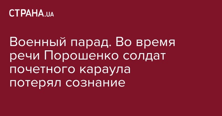 24 августа в Киеве во время речи президента Петра Порошенко, которую он произносил перед  началом самого масштабного военного парада за всю историю Украины, одному из солдат почетного караула стало плохо и он потерял сознание. Инцидент произошел около 10:35. Об сообщает Информатор.