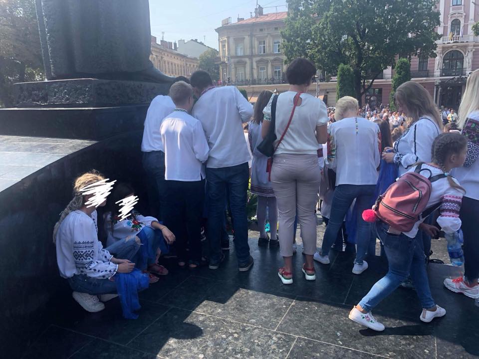 Во Львове на площади Тараса Шевченко на митинге в честь 27 годовщины независимости, согнанные из всех районов дети были вынуждены почти два часа стоять под палящим летним солнцем.
