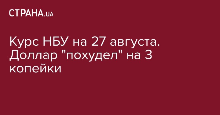 Курс НБУ на 27 августа. Доллар "похудел" на 3 копейки