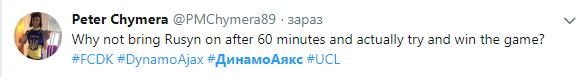 85 Решающая замена у Аякса, а затем - у Динамо. У гостей полузащитник де Вит вышел вместо своего коллеги ван де Беека.