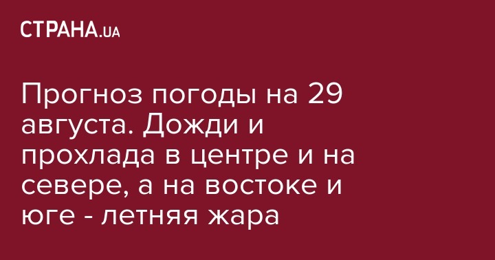 В среду, 29 августа, в некоторых регионах Украины будет все еще по-летнему жарко, а вот западные и северные области снова будут во власти грозовых дождей. Об этом сообщает Укргидрометцентр.