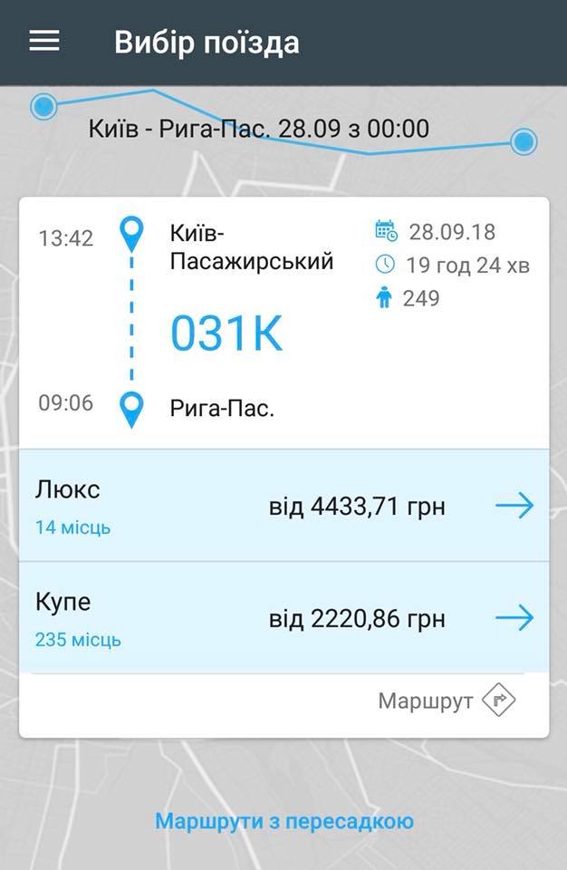 Цена билета в вагон купе из Киева в Ригу составляет 2219,11 гривны, вагон СВ - 4428,17 гривни. Из Киева в Вильнюс билет в купейный вагон обойдется в 1640,62 гривны, вагон СВ - 3271,78 гривны. В Минск из Киева в купейном вагоне можно доехать за 1853,98 гривен, в вагоне СВ - 3574,69 гривны.