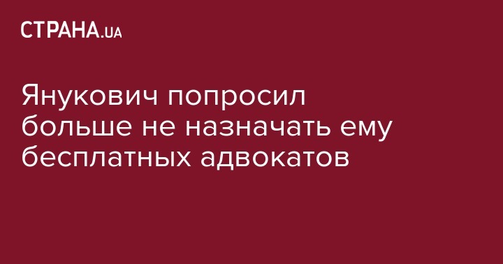 Бывший президент Виктор Янукович попросил Окружной административный суд Киева признать незаконным назначение ему государственных адвокатов. Об этом в четверг, 30 августа, сообщает пресс-служба суда .