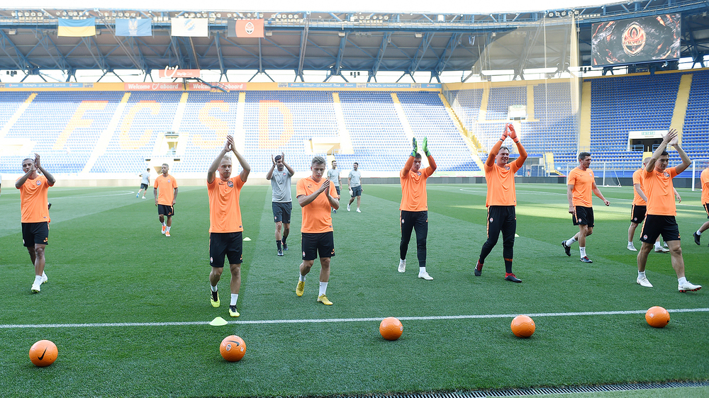 Игроки "Шахтера", вчера 31 августа, накануне игры с "Мариуполем" провели открытую тренировку для болельщиков на ОСК "Металлист". Фото с тренировки опубликовала пресс-служба "горняков".