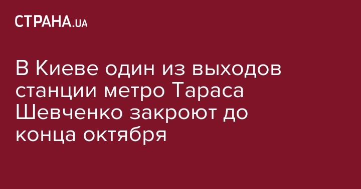 В Киеве один из выходов из подземного перехода станции метро "Тараса Шевченко" закроют с 3 сентября до 31 октября. Об этом сообщает пресс-служба КП "Киевский метрополитен".
