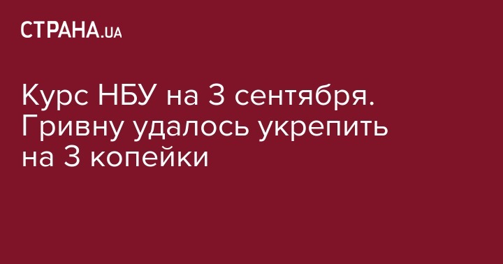 Курс НБУ на 3 сентября. Гривну удалось укрепить на 3 копейки