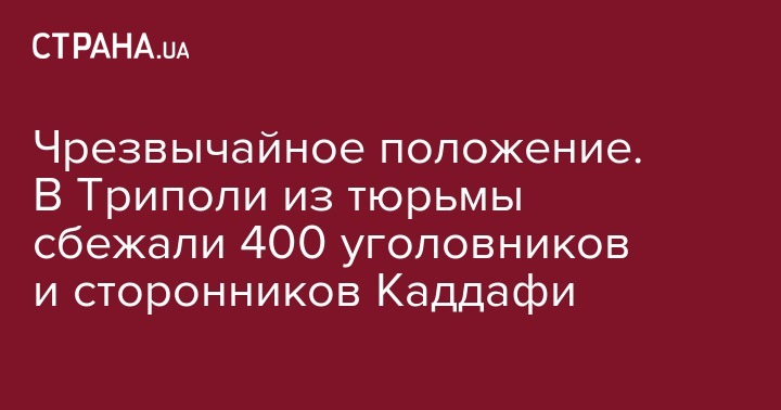 Напомним, что в Триполи введено чрезвычайное положение. В ливийской столице с 27 августа продолжаются столкновения между представителями различных вооруженных группировок. По информации властей, в результате стычек погибли не менее 39 человек, еще несколько десятков получили ранения.