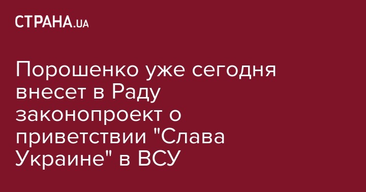 Порошенко уже сегодня внесет в Раду законопроект о приветствии "Слава Украине" в ВСУ
