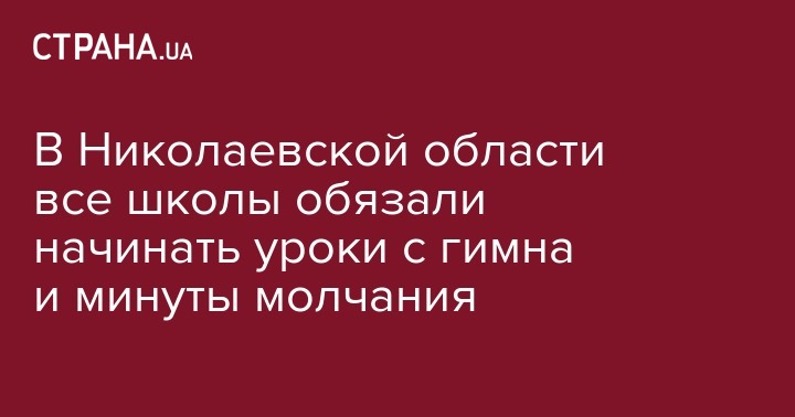 С прослушивания гимна Украины и минуты молчания теперь будут начинаться первые уроки в учебных заведениях Николаевской области. Такое распоряжение подписал глава Николаевской государственной администрации Алексей Савченко. Об этом он сообщил во время линейки в 36-й школе Николаева, пишет НикВести.