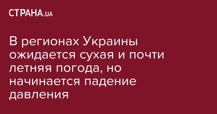 В Украине 4 сентября сохранится летний характер погоды с высокой дневной температурой, в большинстве областей в поле повышенного атмосферного давления будет сухо, хотя ожидается падение давления. Об этом сообщает Укргидрометцентр.