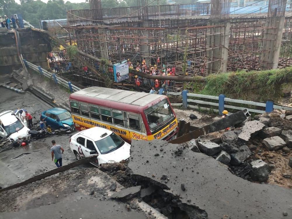 Во вторник, днем 4 сентября, на юге индийского города Калькутта произошло обрушение 40-летнего моста. Вместе с ним упали несколько легковых машин и автобус. Об этом сообщает Hindustan Times.