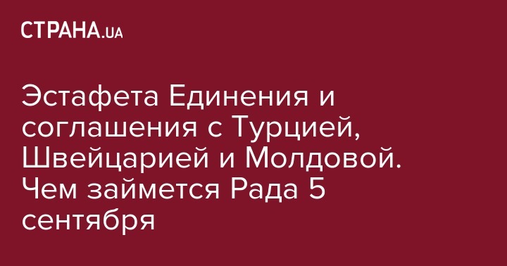 Сегодня, 5 сентября, нардепы посвятят рабочий день вопросам ратификации. В частности, они планируют ратифицировать межгосударственное соглашение с Турцией о взаимном содействии и защите инвестиций, с Португалией - об экономическом сотрудничестве, со Швейцарией и Молдовой - о реадмиссии. Об этом говорится в повестке дня Рады.
