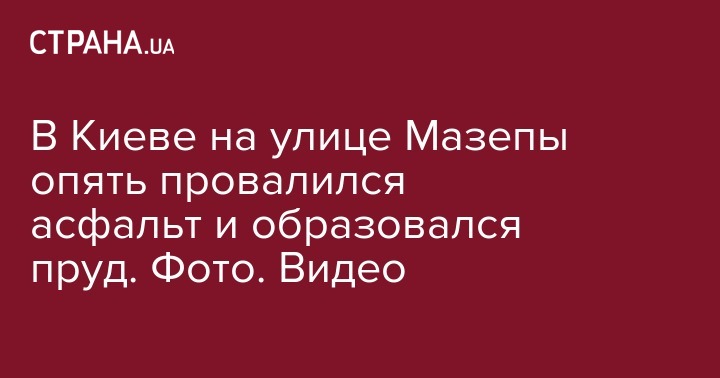 В Киеве на улице Мазепы опять провалился асфальт и образовался пруд. Фото. Видео