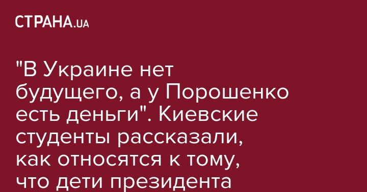 Мнения молодых людей по этому поводу разделились. Часть опрошенных "Страной" заявили, что относятся к этому негативно, а часть, считают, что это вполне нормально, поскольку в Украине слабое образование и нет будущего, а у президента есть деньги и он желает своим детям лучшего.