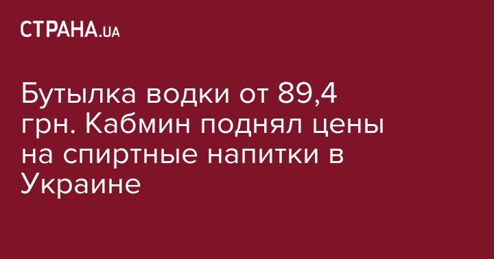 Согласно постановлению, принятому на заседании правительства в среду, минимальную розничную цену на пол-литровую бутылку водки предлагается повысить – до 89,4 грн. Минимальные оптово-отпускные цены на водку и ликеро-водочные изделия повышаются – до 321 грн/литр 100%-го спирта. Минимальные цены на вина натуральные повышены до 42 грн за бутылку 0,7 л в рознице, на крепленые вина и вермуты – до 49 грн, на шампанское за бутылку 0,7 л – до 89 грн.