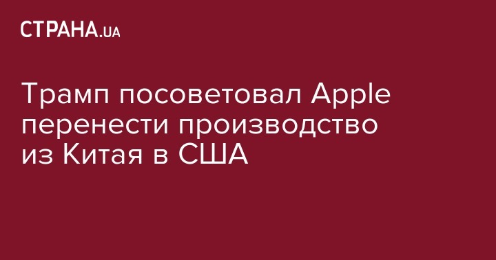 Президент США Дональд Трамп, который ввел новые импортные пошлины на товары из Китая, советует компании Apple перенести свое производство в США, чтобы избежать подорожания продукции. Об этом он написал на странице в Twitter.