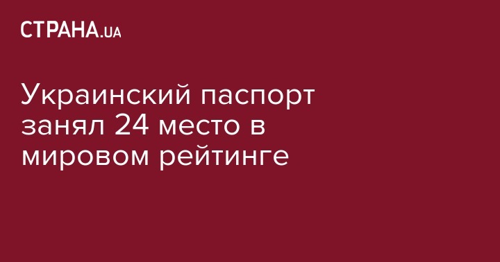 Украинский паспорт в рейтинге граничит с документами Антигуа и Барбуда и Тринидадом и Тобаго (23 место) и Маврикия и Венесуэлой (25 место). В прошлом году Украина в этом рейтинге занимала 32-ю позицию.