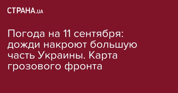 Во вторник, 11 сентября, в Украине обещают облачную погоду с прояснениями. Почти во всех регионах, кроме запада и крайнего востока, пройдут кратковременные дожди, местами грозы. Об этом сообщает Укргидрометцентр.