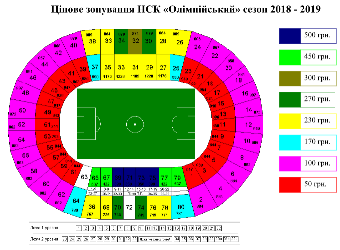 Доступны билеты следующих ценовых категорий: 50, 100, 170, 230, 270, 300, 450 и 500 гривен, передает прес-служба Динамо.