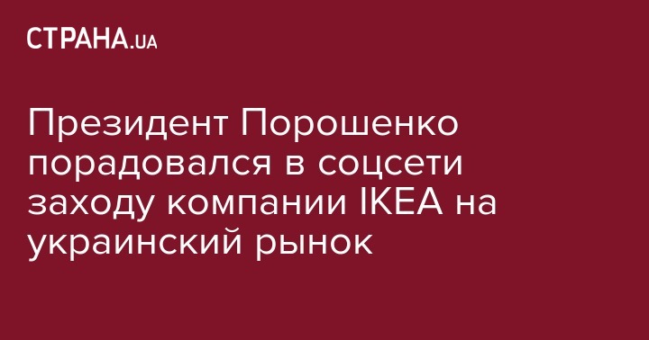 "Украина долго ждала этой новости, и за последние годы произошло много изменений, которые сделали открытие IKEA в нашем государстве возможным. Это - хороший сигнал для других мировых брендов, с Украиной нужно иметь дело", - говорится на странице Порошенко.