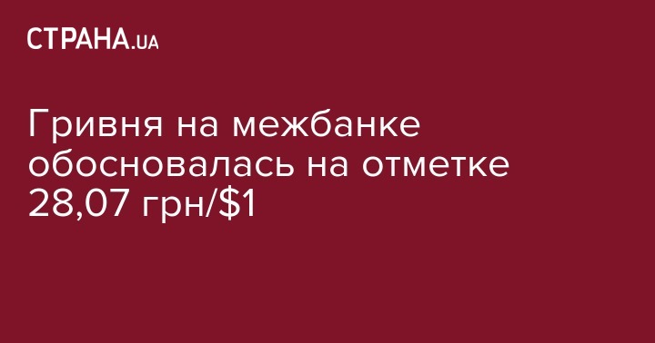 Гривня на межбанке обосновалась на отметке 28,07 грн/$1