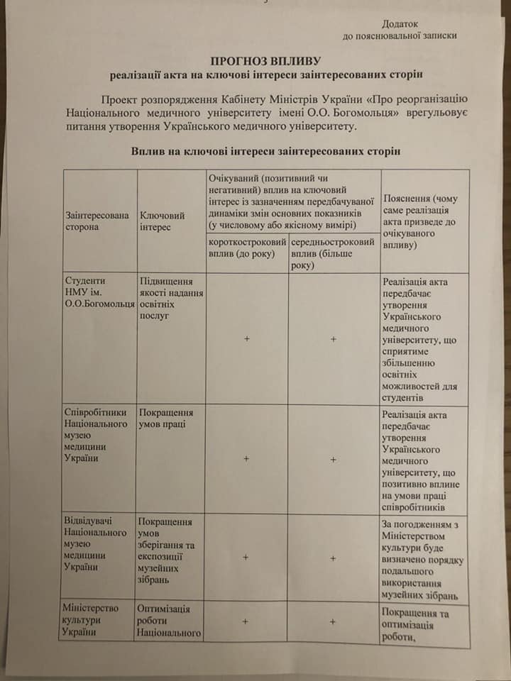 Народный депутат Ольга Богомолец на своей странице в Fаcebook написала, что Минздрав и Кабмин хотят лишить национальный медицинский университет имени Александра Богомольца его имени из-за слияния с национальным музеем медицины. Таким образом будет образован Украинский медицинский университет, который уже не сможет носить имя Богомольца.