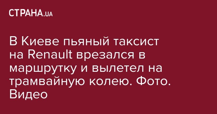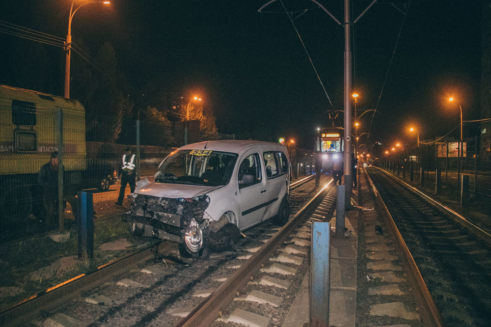 В Киеве пьяный таксист на Renault врезался в маршрутку и вылетел на трамвайную колею. Фото. Видео