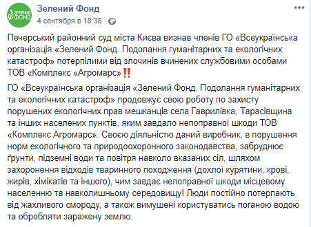 Скриншот: Facebook Зелений Фонд