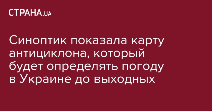 Синоптик показала карту антициклона, который будет определять погоду в Украине до выходных