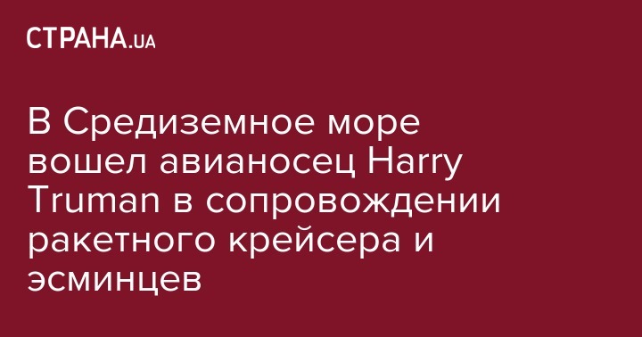 В акваторию Средиземного моря вошла авианосная ударная группа ВМС США во главе с атомным авианосцем Harry Truman. Об этом сообщает пресс-служба американских военно-морских сил.